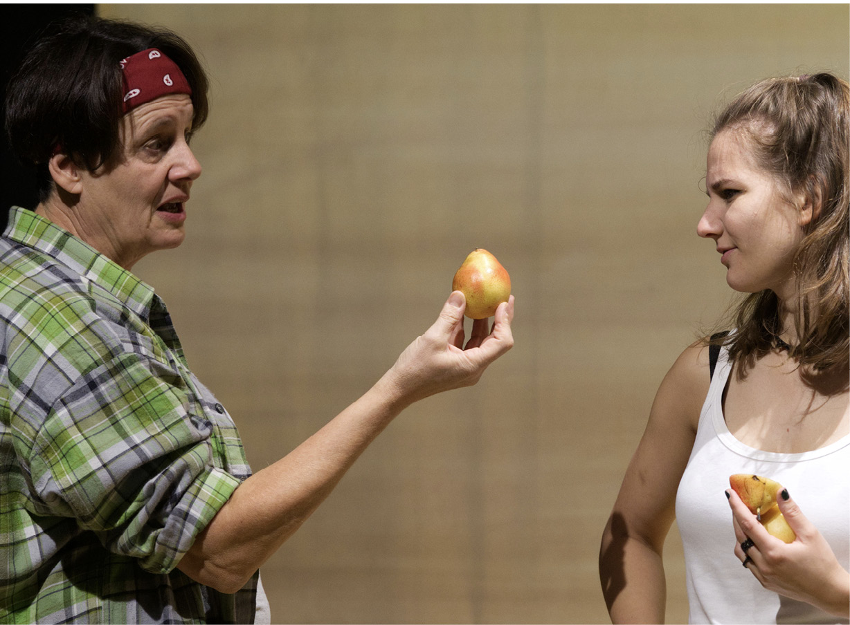 Der Roman „Alte Sorten“ von Ewald Arenz führte 2020 als Taschenbuch die Jahresbestseller-Liste des SPIEGEL an – nun kommt der Stoff auf die Bühne. Walter Menzlaw vom Chawwerusch Theater Herxheim hat aus der Geschichte die erste Bühnenfassung entwickelt und inszeniert. Im Stück begegnen sich zufällig Sally (Ann-Kathrin Kuppel), die Minderjährige, die abgehauen ist, und Liss (Felix S. Felix), die Mittfünfzigerin, die alleine einen Hof bewirtschaftet. Zunächst einen Tag und dann noch einige mehr leben und arbeiten beide gemeinsam auf dem Bauernhof. Beim Brotbacken, dem Ernten von Kartoffeln und dem Pflücken alter Obstsorten kommen sich die zunächst eher wortkargen Frauen näher und ein dunkles Geheimnis wird langsam aufgedeckt… „Alte Sorten“ zeigt zugleich mit starken rauen Tönen und sanfter Stille die Annäherung und Entwicklung zweier freiheitsliebender Frauen.