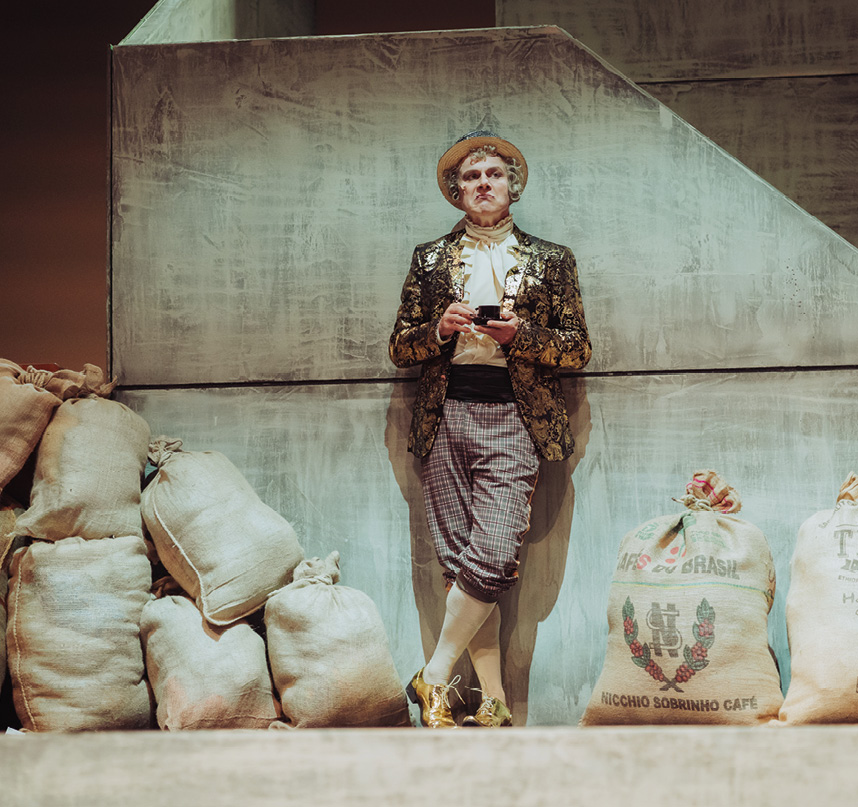 Nicht in Wien und auch nicht im Venedig der 1750er Jahre ist dieses „Kaffeehaus“ gelegen, sondern mitten in Ludwigshafen: Tilman Gersch hat die alte Goldoni-Komödie umgesiedelt und lässt den jungen Wirt nun hierzulande agieren. Der Stoff geht folgendermaßen: Mit der Eröffnung einer Kaffeebar hat sich Ridolfo seinen Lebenstraum erfüllt, fairer Kaffee, günstige Preise und ein stets freundlicher Service sind hier obligatorisch. Doch leider hat Ridolfo nicht mit seinem schwierigen Nachbarn gerechnet, der in nächster Umgebung ein Spielcasino betreibt und Menschen mit fragwürdigen moralischen Grundsätzen anzieht. So hat er alle Hände voll zu tun, um Streit zu schlichten, das Recht zu verteidigen, Frauen zu trösten, Männer vor dem Untergang zu bewahren und nebenbei auch noch Kaffee zu servieren… Gespielt wird er, genau wie sämtliche weiblichen Personen des Stücks von der jungen Schauspielerin Josephine Thiesen; weitere Rollen in der situationskomischen Verwicklungskomödie übernehmen Rainer Kühn, Mohammad Nick Nayeri, Jörg Malchow und Stefan Schießleder, und zur Klavierbegleitung von Frank Rosenberger geben sie obendrein – teils mehrstimmig – auch Liedgut zum Besten.