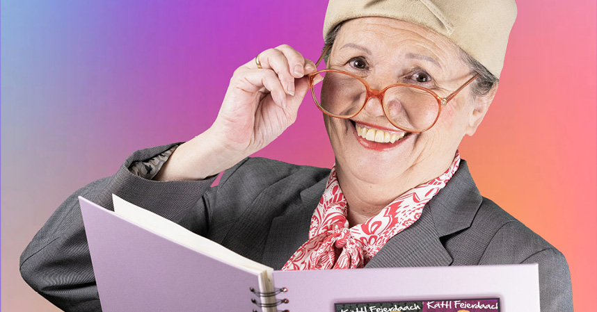 Lebenserfahrung zahlt sich doch aus, wenn man eine Karriere als Komödiantin anstrebt: Jutta Hinderberger aus Speyer hatte ihr halbes Leben schon hinter sich, als sie „so richtig ernsthaft“ loslegte. Als die Kunstfigur Kättl Feierdaach geboren wurde, war sie schon fuffzig, und auch das ist bereits eine ganze Weile her. Genug Stoff also, um auch mal zurückzublicken und das Beste vom Besten herauszupicken! In einer Zeitreise nimmt Kättl mit in die besten Ereignisse der letzten Jahre, die sie gemeinsam mit ihrem Mann, genannt „Moiner“, und ihrer besten Freundin Hannelore erlebt hat: Alltag, aber auf die witzige Art! Und natürlich astrein im Dialekt nacherzählt!