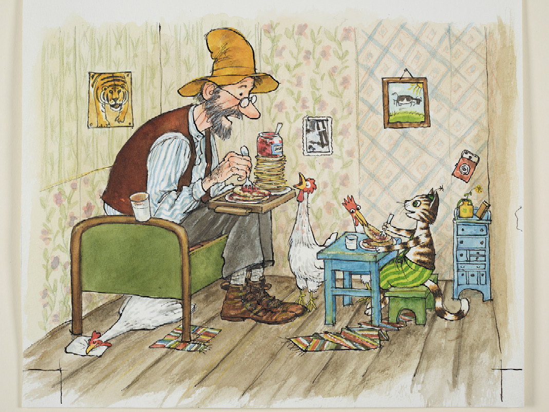 Ein buntgemischter Haufen ist die Familie Nordqvist: Vater Sven hat als „Kinder“ so unterschiedliche Gestalten wie Mama Muh, Björn Bär und den kleinen Kater Findus samt dem alten Pettersson. Fast jedes Kind kennt die heimelig-wimmeligen Bilderwelten, in denen sich diese Charaktere tummeln und ihre harmlosen Abenteuer miteinander erleben. Jetzt kommen die Werke von Autor und Illustrator Sven Nordqvist nach Karlsruhe: Während die Staatliche Kunsthalle weiterhin sanierungsbedingt geschlossen ist und übergansweise als Gast im ZKM weilt, öffnet die Junge Kunsthalle ihre Tore für Besuch und zeigt nun „Pettersson, Findus & Co. – Die fabelhafte Welt von Sven Nordqvist“. Hier lässt sich Nordqvist begleiten auf seinem Weg von der ersten Skizze bis zur fertigen Buchseite, und anschließend kann man in den Atelierräumen und der eigens eingerichteten Werkstatt von Pettersson und Findus der eigenen Kreativität und Fantasie freien Lauf lassen!