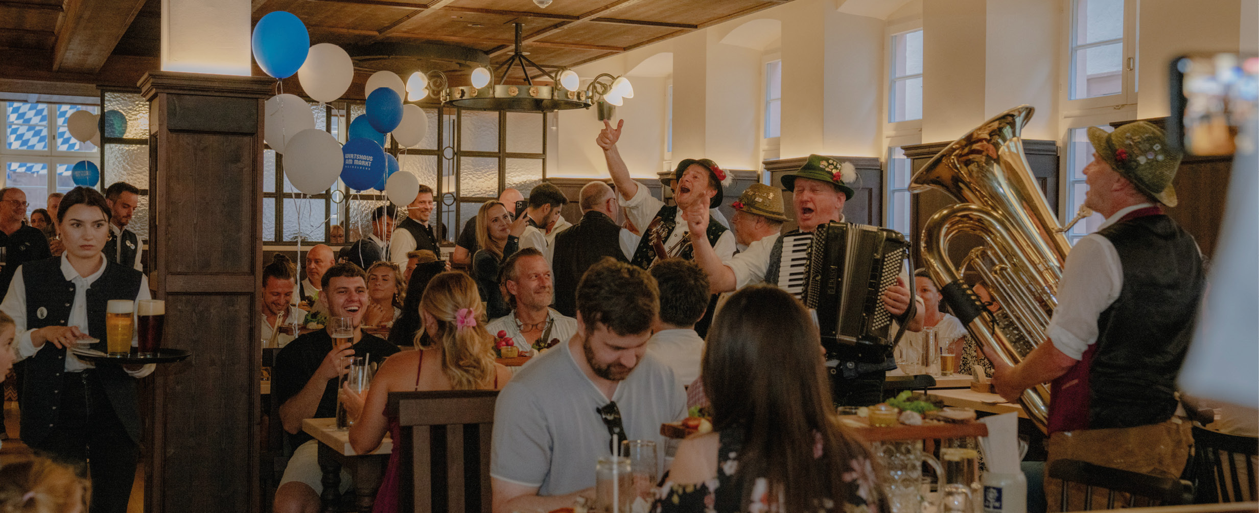 AR: Die Grundidee hinter dem Wirtshaus ist für mich, einen Ort zu schaffen, an dem sich Menschen begegnen, und zwar ungezwungen, ehrlich und mit echter Lebensfreude. Ein Platz, an dem Tradition nicht altmodisch wirkt, sondern lebendig bleibt – durch gutes Essen, bestes Bier und das Miteinander. Als Gastgeber lege ich besonderen Wert auf Authentizität, Qualität und Herzlichkeit. Unsere Philosophie basiert auf dem Gedanken, dass jeder, der hereinkommt, sich willkommen fühlen soll. Ganz gleich, ob es zum schnellen Feierabendbier, zum Familienessen oder zum langen Stammtischabend ist, jede und jeder sind willkommen. Regionalität, handwerkliche Küche und ein offenes Ohr für die Gäste gehören für mich genauso dazu wie ein Lächeln und das Gefühl: „Hier bin ich richtig“. Unsere enge Zusammenarbeit mit der renommierten Augustiner Brauerei München – der ältesten Privatbrauerei der Stadt Münchens – gewährleistet eine qualitative Bierkultur. Ihre Bierspezialitäten, allen voran das beliebte Augustiner Hell, werden im Wirtshaus am Markt frisch gezapft und mit sichtbarem Stolz ausgeschenkt. Für Liebhaber echter Braukunst ist das ein besonderes Erlebnis – und für alle Gäste die perfekte Begleitung zu den herzhaften Speisen. Ein besonderes Highlight ist die sogenannte „Schwemme“ im vorderen Bereich des Gastraums. Hier trifft man sich auf ein schnelles Bier – die traditionelle „Stehhalbe“ – oder auf ein ungezwungenes Gespräch. Diese offene Atmosphäre erinnert an klassische bayerische Wirtshäuser und schafft einen lebendigen Treffpunkt für Alt und Jung.