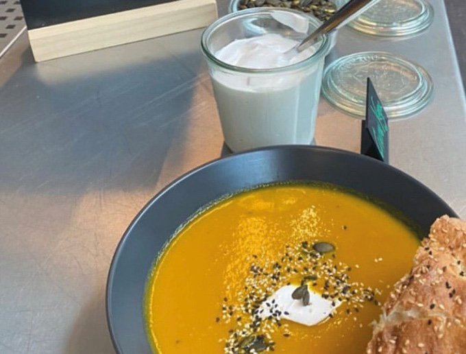 Die Zentrale ist die Mitte des Kulturzentrums Karlstorbahnhof. Vor Veranstaltungen dient sie als Aufenthaltsort und Raum der Begegnung. Abseits von Veranstaltungen zaubert das Gastroteam des Karlstorbahnhofs aber jeden Monat zahlreiche köstliche Mittagstische. Alle Gerichte sind entweder vegan oder es gibt sie als vegane Alternative. Wie wäre es mit Grünkohleintopf mit Würstchen oder Breznknödel mit Soße? Oder lieber vegane Frittata, Rote-Beete-Ingwer-Suppe oder vegane Burritos? Das Küchenteam der Zentrale orientiert sich mal an der regionalen Küche, mal an internationalen Gerichten, aber achtet immer darauf, eine vegane Alternative bei jedem Mittagstisch anzubieten. Dazu gibt es unschlagbare Kuchen, leckere Kaffeespezialitäten und kühle Getränke. Welche Gerichte es im Monat gibt, verrät die Webseite.