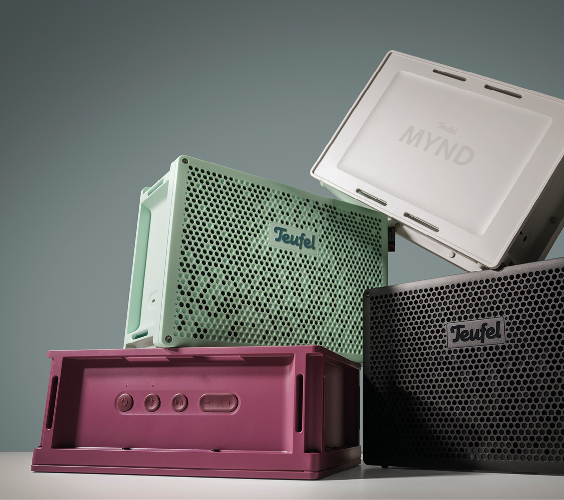 Der neuartige Bluetooth-Lautsprecher MYND von Teufel liefert eine gehörige Portion Sound-Spaß: Dafür sorgen ein 2.1-Aufbau mit einem großen Tiefmitteltöner und zwei Hochtönern, die dank Waveguides den Sound breit abstrahlen. Für optimale Bass-Performance wird das Töner-Ensemble von zwei großen Passivmembranen unterstützt. Dazu sorgen effiziente Class-D-Verstärker mit DSP-Technologie für druckvollen Sound bei geringen Lautstärken und eine verzerrungsfreie Wiedergabe bei hohen Lautstärken. Doch vor allem ist der Bluetooth-Lautsprecher auf der Reise in eine nachhaltigere Zukunft für Teufel ein großer Schritt: Der MYND ist robust, erweiterbar, resistent gegen Wasser und Staub, besteht zur Hälfte aus recyceltem Kunststoff. Der Aufbau des Lautsprechers ist modular und der integrierte Akku direkt durch die Nutzenden tauschbar. Zudem sind alle Schaltpläne und Komponenten öffentlich zugänglich, wodurch der Speaker um Funktionen erweitert und im Fall der Fälle sogar problemlos repariert werden kann. Der MYND ist in den vier Farben Warm Black, Warm White, Light Mint und Wild Berry erhältlich.