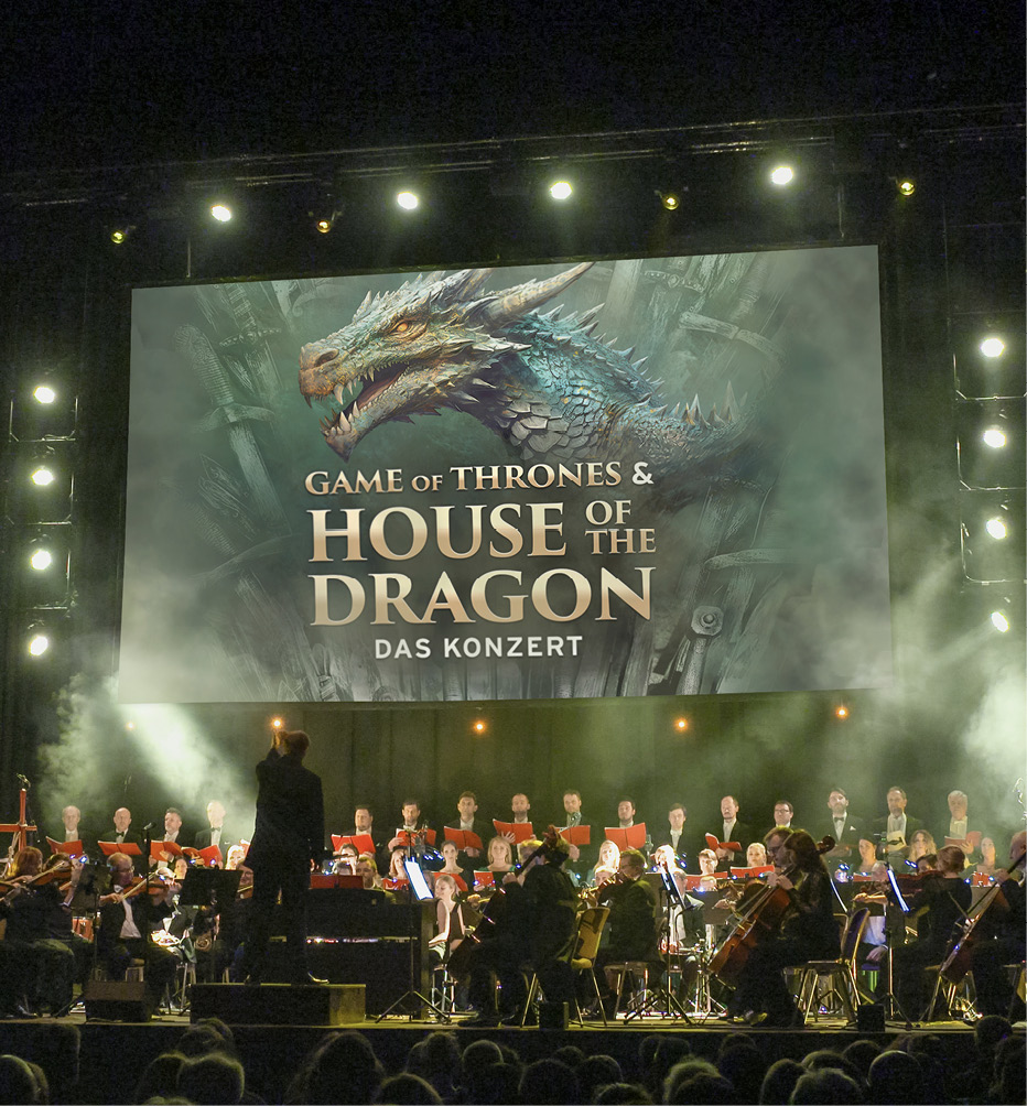 Westeros. Grundlage sind die Kompositionen von Ramin Djawadi, der mit seinen Arbeiten für beide Serien maßgeblich zur musikalischen Identität der Stoffe beigetragen hat. Im Konzert werden ausgewählte musikalische Themen aus Game of Thrones und House of the Dragon in sinfonischer Besetzung präsentiert. Dabei orientieren sich die Arrangements eng an den Originalkompositionen, werden jedoch für den Konzertsaal neu strukturiert.